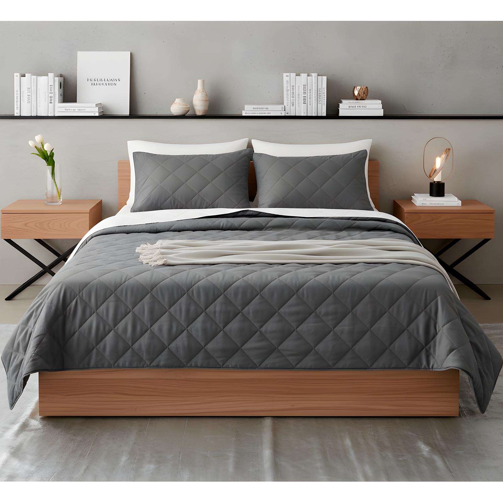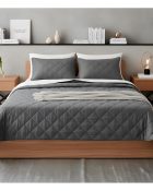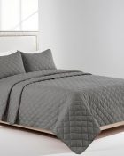 Cubrecama Quilt Bordado Diseño Pespunte Gris Oscuro 1,5 Plazas