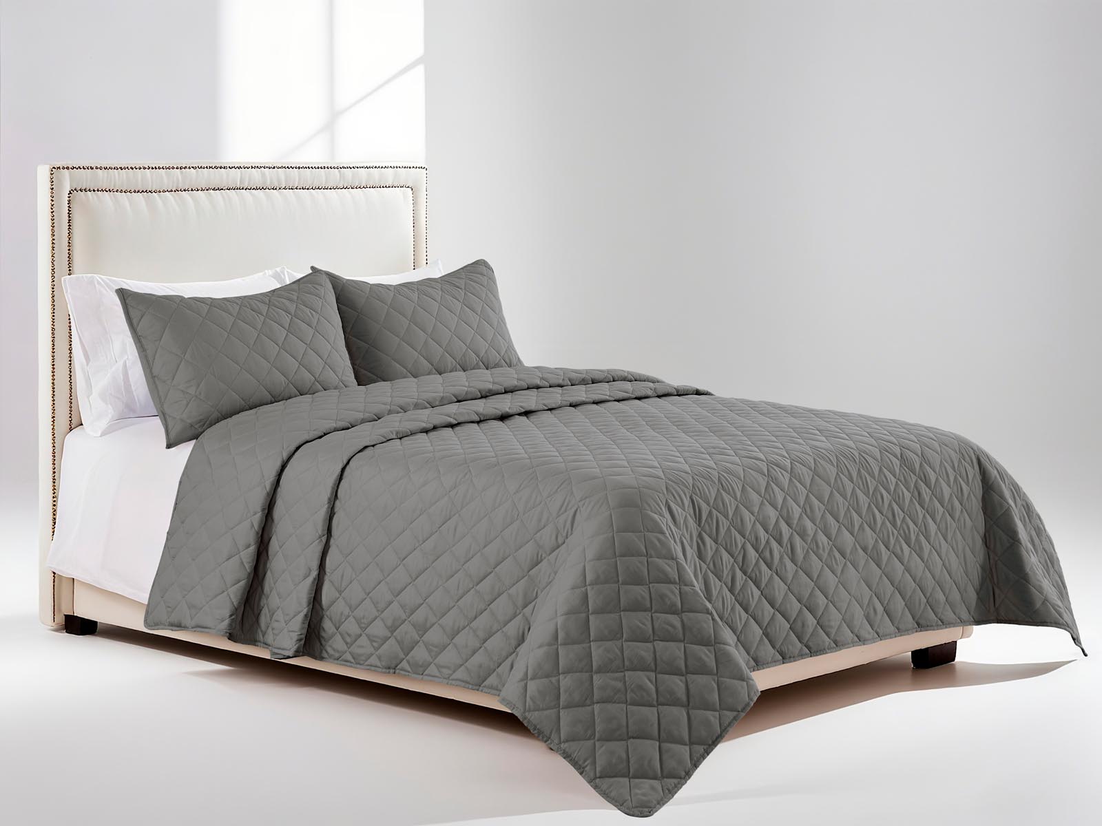 Cubrecama Quilt Bordado Diseño Pespunte Gris Oscuro King